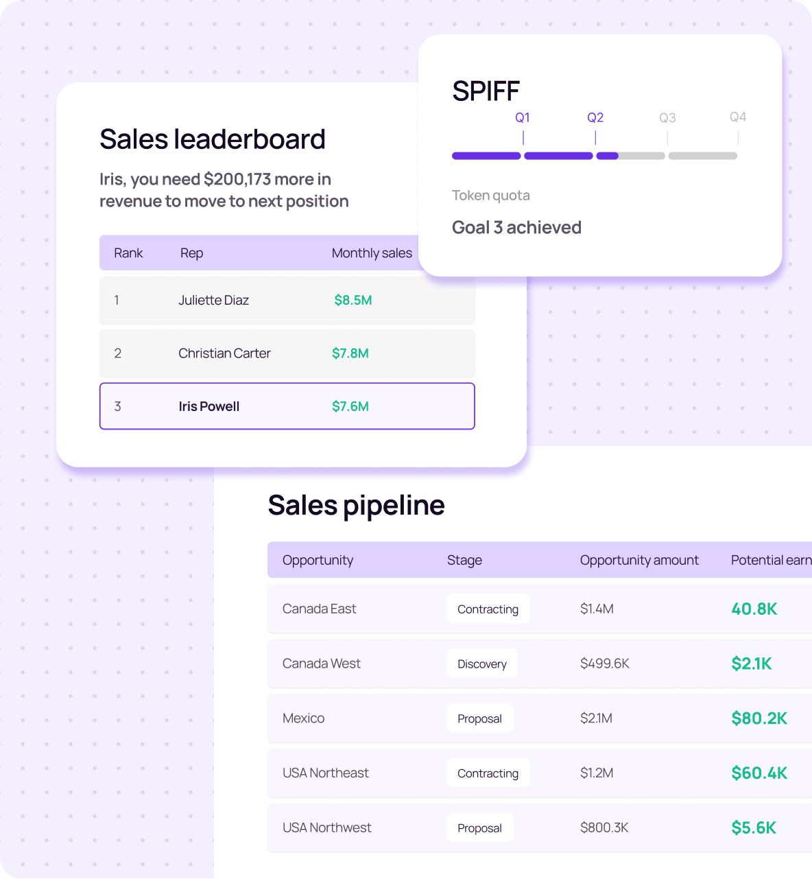 Bring your pipeline data into 水仙直播 to give reps visibility into earnings potential. Dynamically generate incentive performance dashboards tailored to each seller鈥檚 unique comp plan鈥攕o it鈥檚 easy to see exactly where to focus to hit quota.