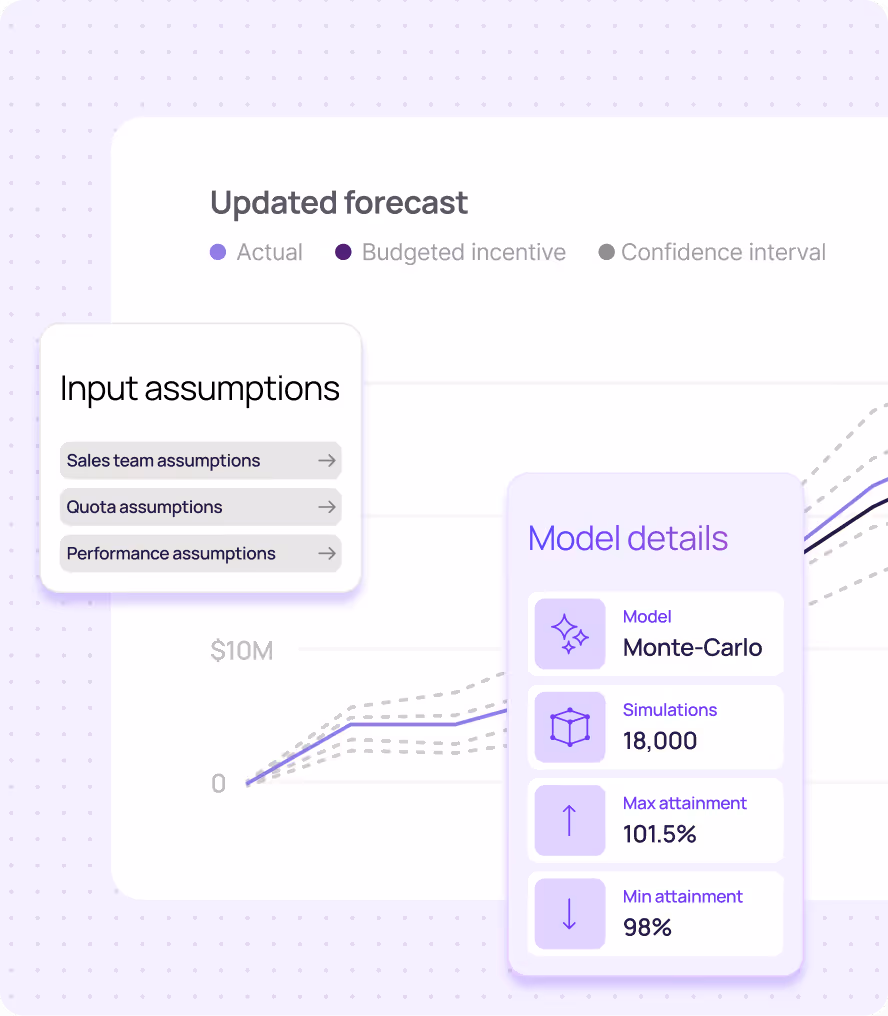 Leverage Monte-Carlo simulation modeling and other forecasting techniques to improve forecast accuracy and simulate potential incentive spend. Confidently pressure test thousands of performance scenarios for new incentive structures before deployment, ensuring ROI.