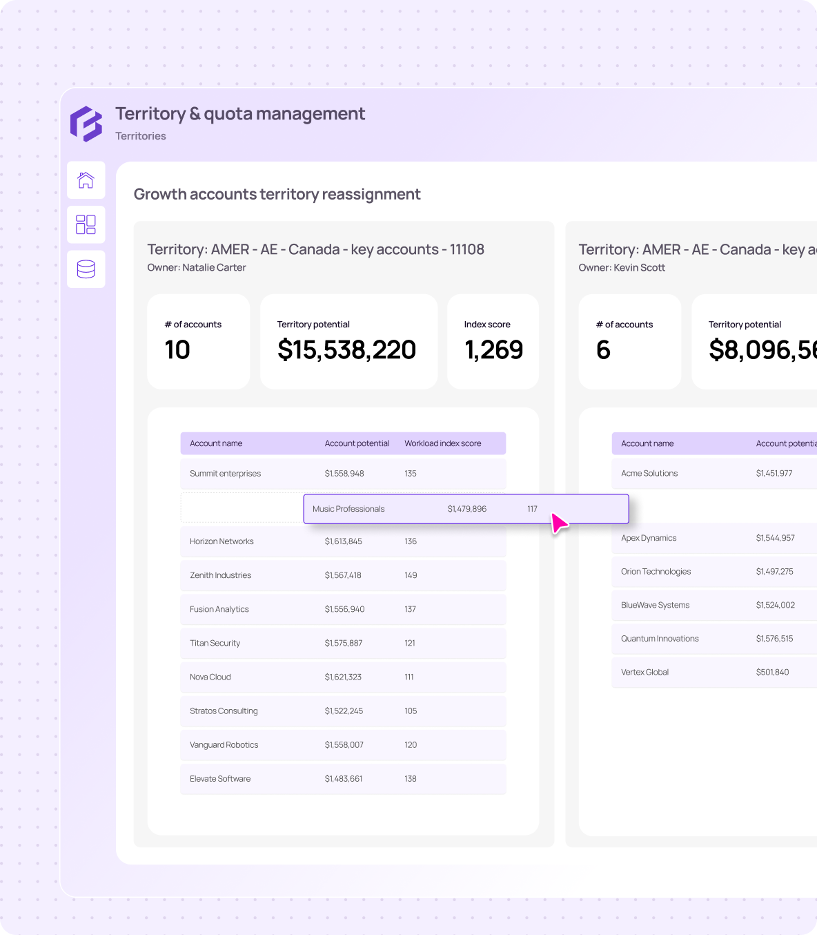 Unlock revenue growth with balanced, data-driven territories. AI-powered insights assess account potential and workload to help you align seller capacity with market demand 鈥 whether you鈥檙e scaling teams or entering new markets.
