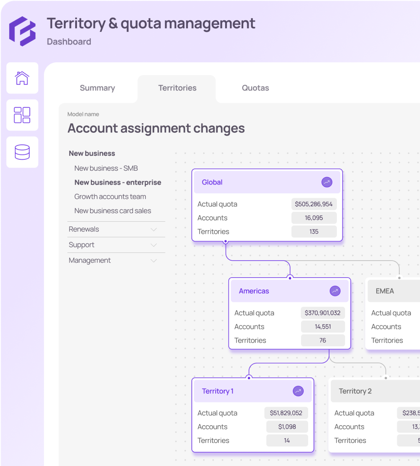 Plan territories your way 鈥 by geography, named accounts, product lines, overlays, or management structure. Handles complex hierarchies, reporting relationships, and assignment rules without manual workarounds or administrative headaches.